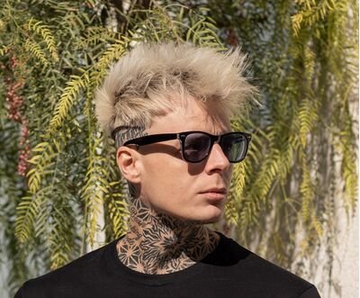 Γυαλιά ηλίου με μαύρο κοκκάλινο σκελετό -μπλέ φακός