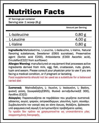 Χρήση: Εάν λαμβάνονται πριν από την προπόνησή σας, τα BCAA συμβάλλουν στην αποτροπή της διάσπασης της πρωτεΐνης των μυών κατά την άσκηση, ενώ αν καταναλώνονται το συντομότερο δυνατό μετά την άσκηση, αυξάνουν τη σύνθεση πρωτεΐνης και μεγιστοποιούν τα αποτελέσματα της προπόνησης