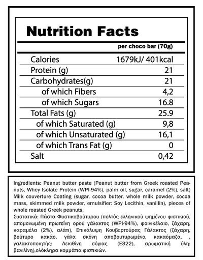 - Εσωτερική πάστα από whey πρωτεΐνη isolate (WPI-94%), μαζί με φυστικοβούτυρο από 100% ελληνικά φιστίκια.