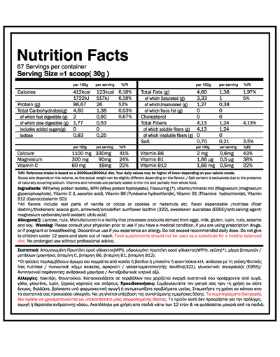 Εκτός της αδιαμφισβήτητης ποιότητας, στόχος μας είναι και μια γευστική πρωτεΐνη. Δημιουργήσαμε 11 εξαιρετικές γεύσεις, χωρίς προσθήκη ζάχαρης, δεξτρόζης ή μαλτοδεξτρόζης. Η πρωτεΐνη σας πλέον γίνεται μια απόλαυση.